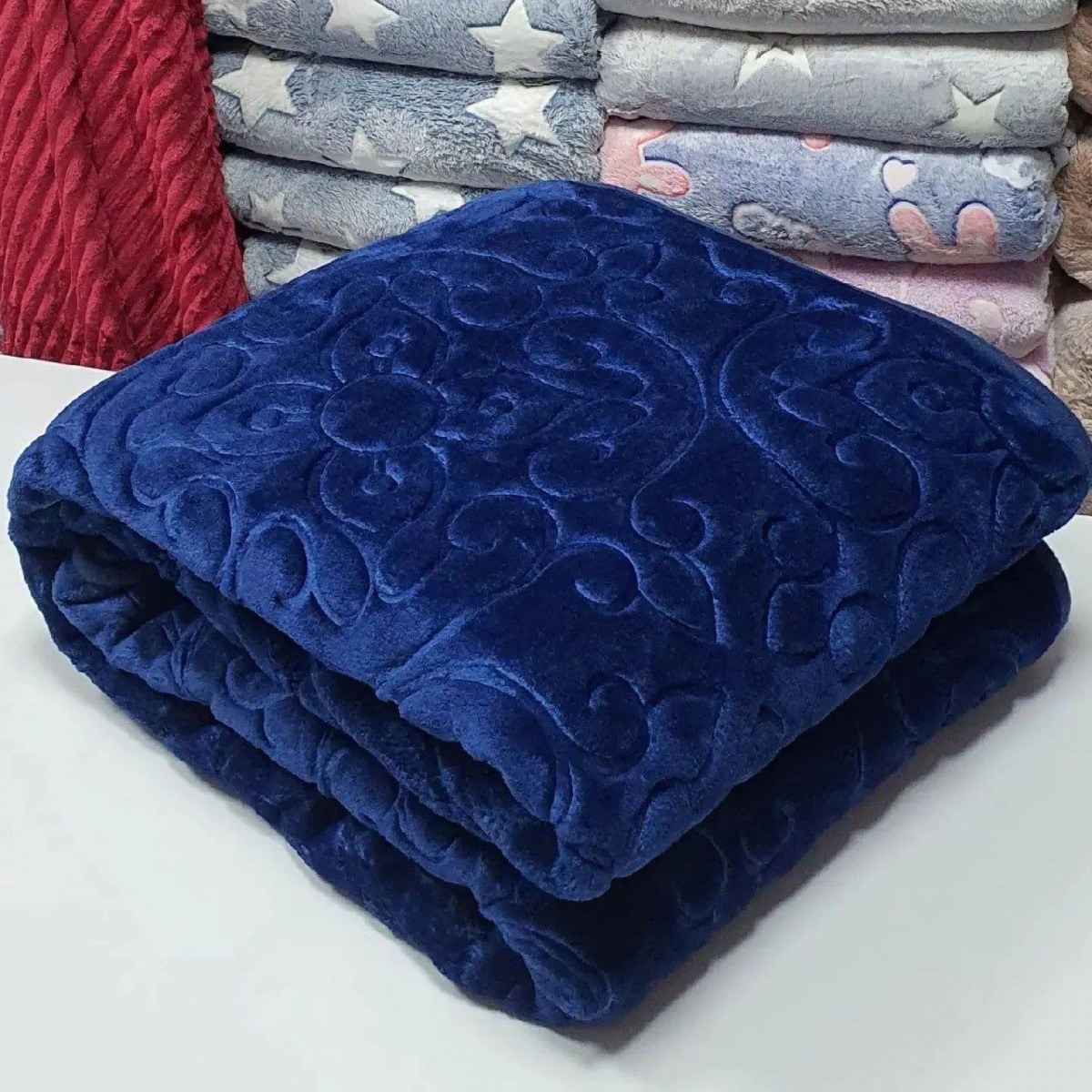 پتو گلبافت طرح گل برجسته تک رنگ سورمه ای