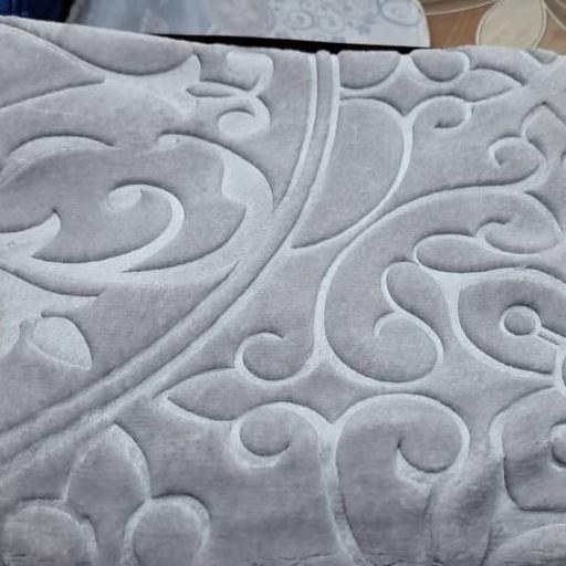 پتو گلبافت طرح گل برجسته تک رنگ طوسی روشن