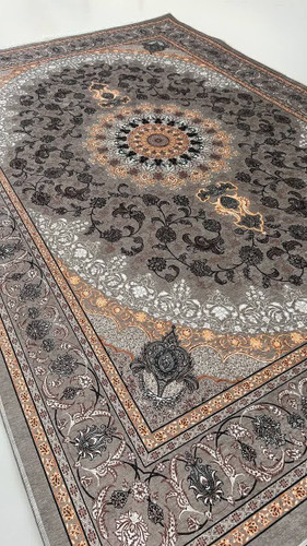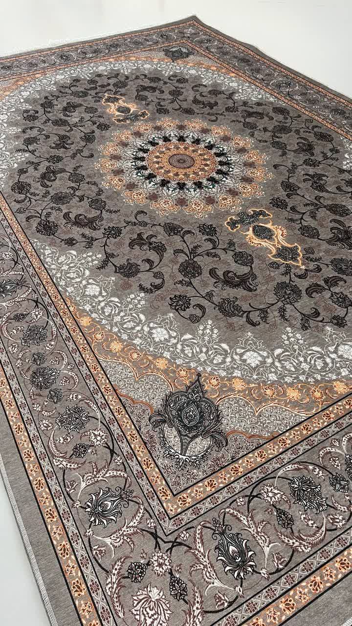 روفرشی کشدار مخمل شانل ترک رنگ زمینه طوسی مدل ترمه ۷۲۴