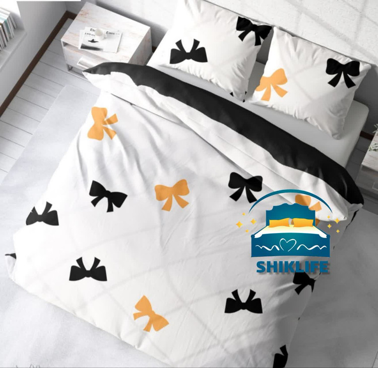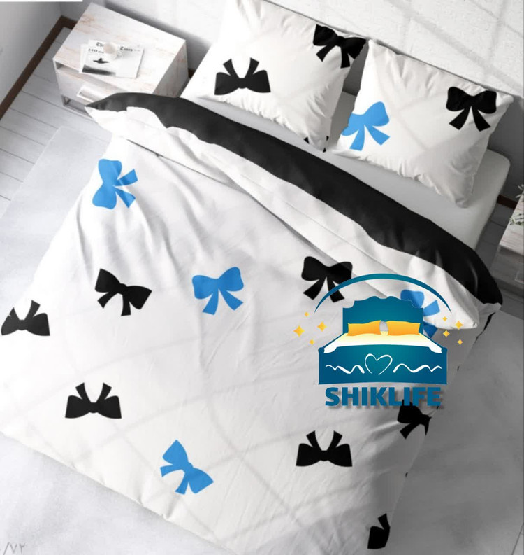 پشت لحاف و ملحفه کشدار ساده بدون طرح میباشد.