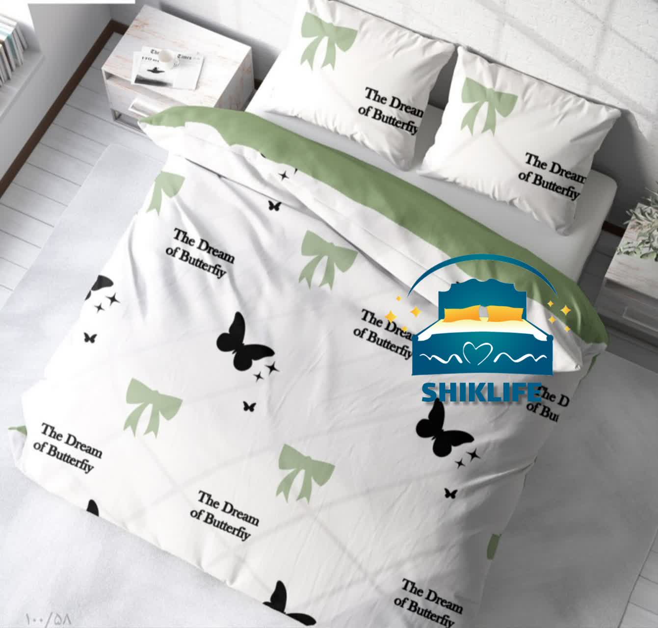 پشت لحاف و ملحفه کشدار ساده بدون طرح میباشد.