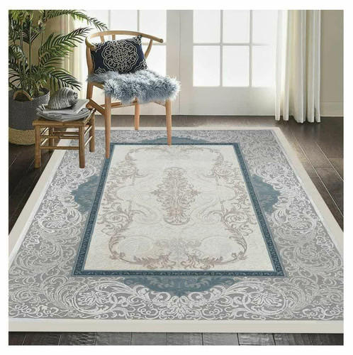 پتو گلبافت طرح گل برجسته تک رنگ طوسی روشن