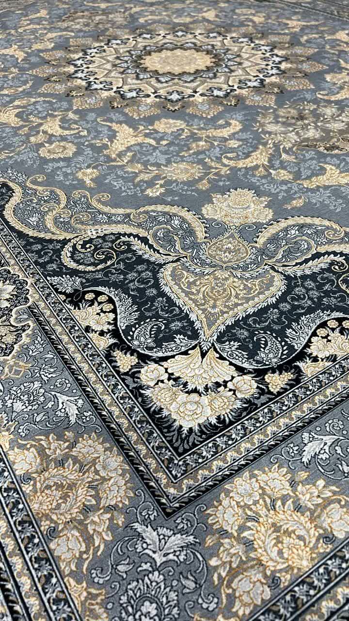 روفرشی کشدار مخمل شانل ترک رنگ زمینه طوسی مدل ترمه ۷۲۴