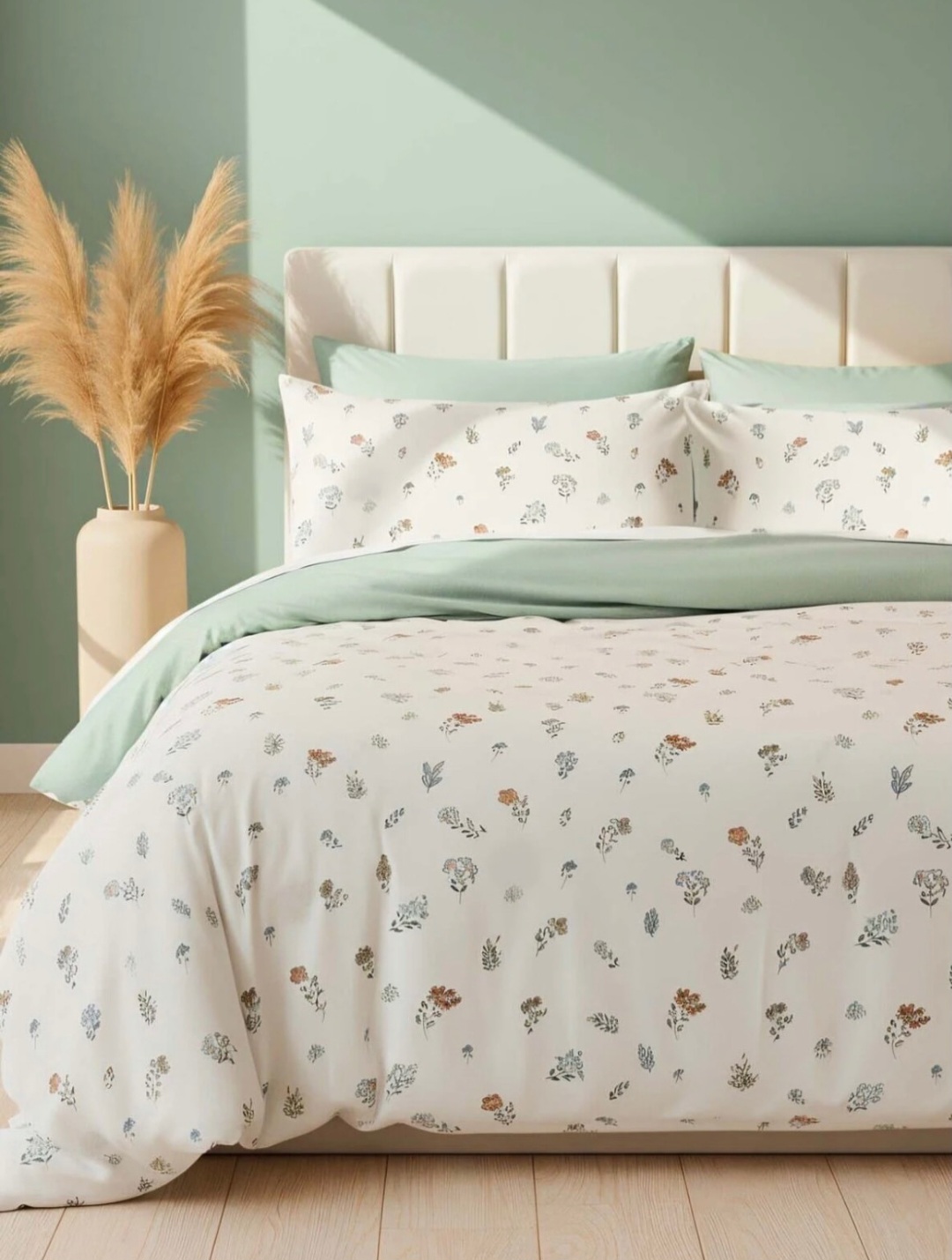 روتختی چاپی جنس میکروتنسل پینترستی سفید گلدار سبز